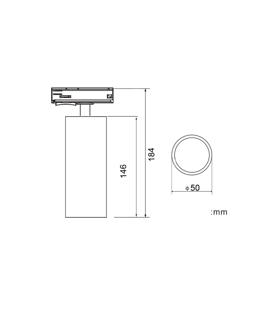 Designet med dimensioner på 145 x Ø50 mm og en hul størrelse på 55 mm, er denne skinnespot kompakt og nem at integrere i de fleste eksisterende skinnesystemer.