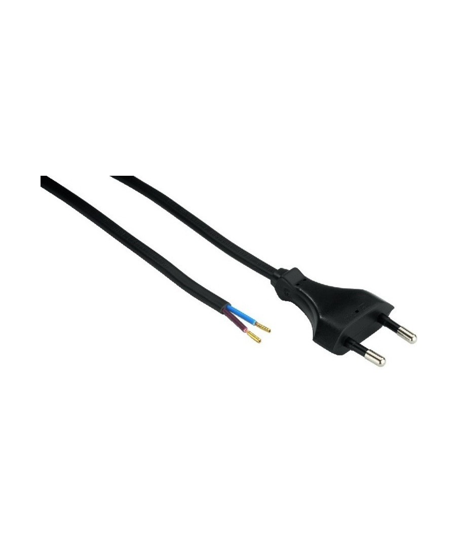 1,5 meter sort strømkabel med eurostik og afisolerede ledninger.