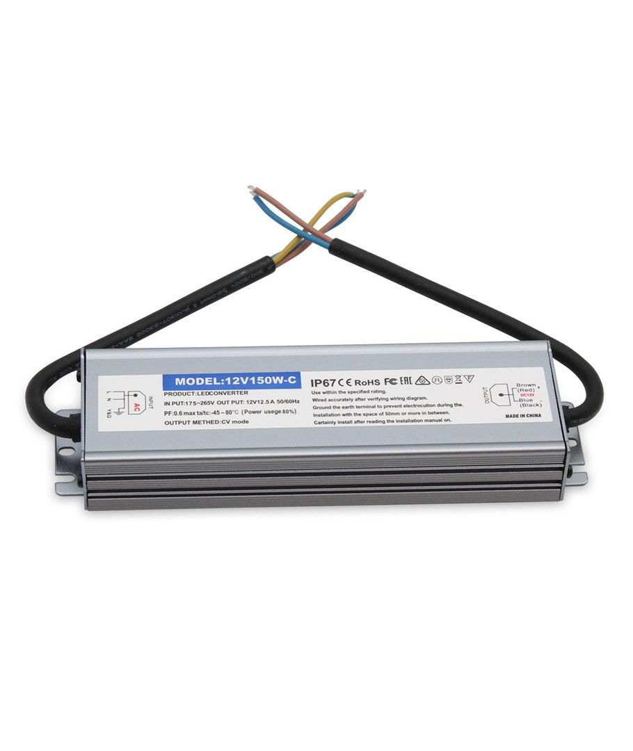 Oplev pålidelig ydeevne og holdbarhed med denne 150W strømforsyning, der er designet til at levere 12V DC strøm til dine LED belysningsbehov.