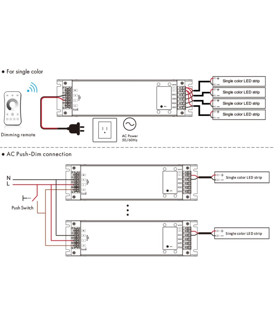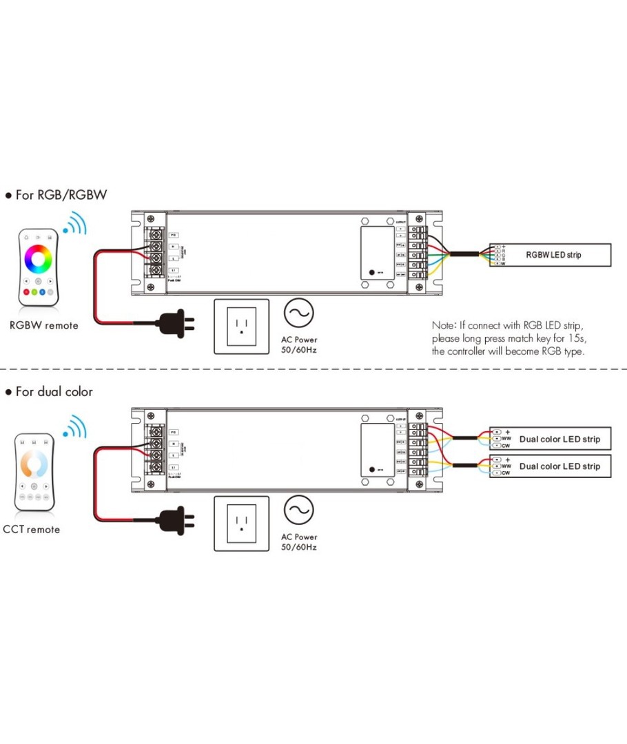Styr 12V, 24V, 230V & dæmpning, CCT, RGB – alt med samme fjernbetjening.