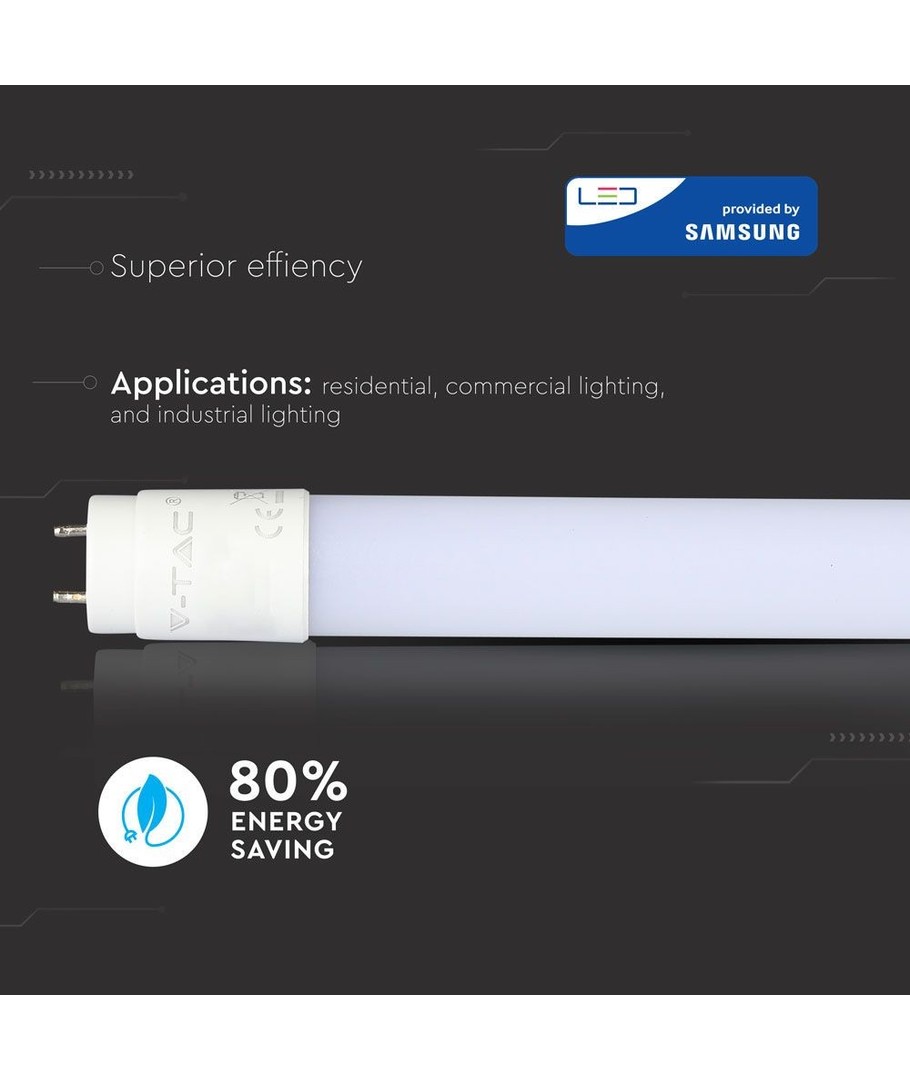 Udstyret med en Samsung LED chip og understøttet af en 5 års producentgaranti, er dette rør designet til pålidelig langvarig drift. Det kan fungere op til 30.000 timer med minimalt tab af lysstyrke, takket være højkvalitets komponenter og effektiv køling.