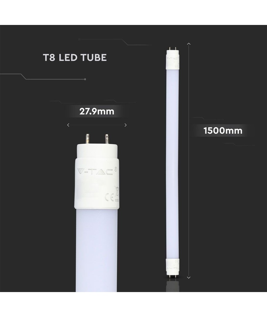 Med dimensionerne 1500 x Ø28 mm er dette LED-rør kompatibelt med de fleste standard T8 armaturer.