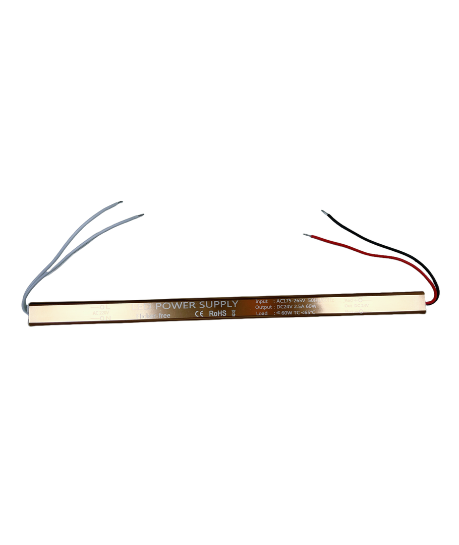 Den nye 60W strømforsyning 24V DC - 2,5A i en ekstra tynd slim model leverer pålidelig strøm uden flimmer og er perfekt til både indendørs og udendørs anvendelse takket være dens IP67-certificering.