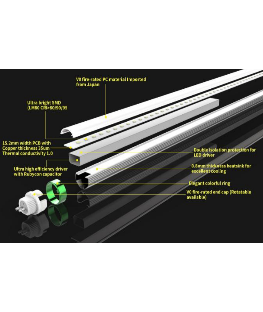 Røret er designet med LED'er af højeste kvalitet, hvilket garanterer op til 50.000 timers drift med minimalt fald i lysstyrke. Kombineret med en robust driver og optimal køling, forventes produktet at have en bemærkelsesværdig lang levetid.