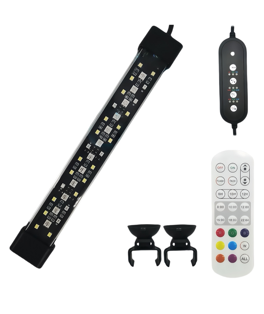 Tag din akvariebelysning til næste niveau med denne effektivt designede LED-løsning, der kombinerer både stil og funktionalitet, så du får et akvarie der både er indbydende og nemt at vedligeholde.