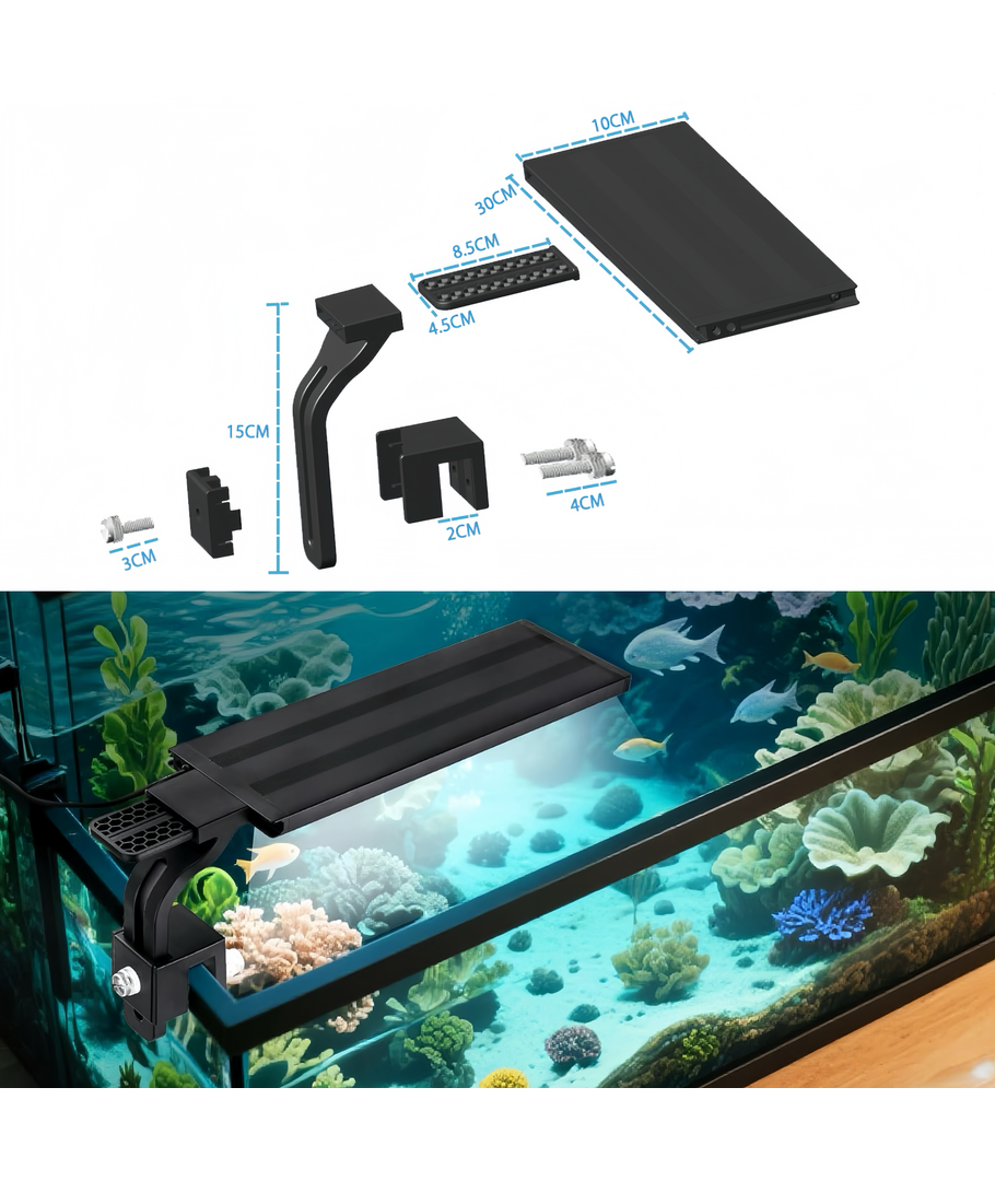 Med dimensioner på 100 x 150 x 300 mm passer denne lampe perfekt til de fleste akvarier uden at tage unødvendig plads. Den er nem at installere og tilsluttes direkte til en 230V forsyning.