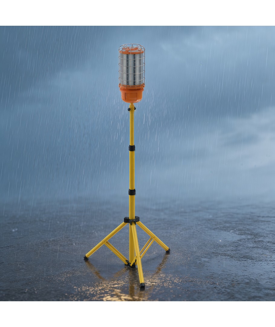 En stærk og praktisk arbejdslampe, der giver pålidelig belysning til både byggeplads, værksted og renoveringsopgaver.