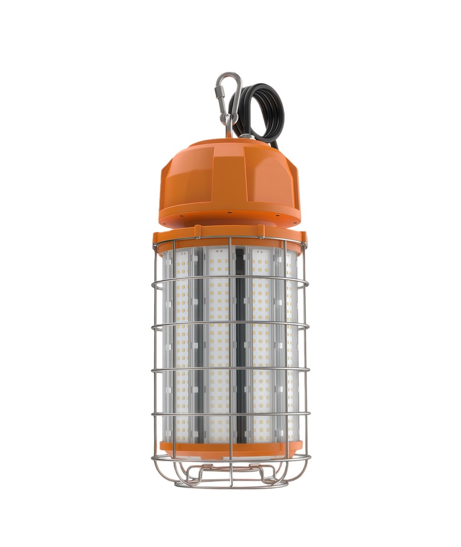 Den robuste konstruktion med beskyttende metalgitter gør lampen ideel til byggepladser, værksteder og andre krævende miljøer.