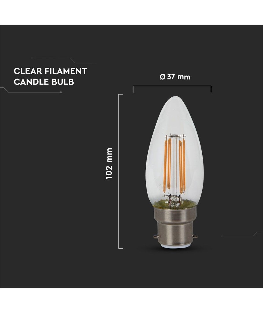 V-Tac 4W LED kertepære er specielt designet til at erstatte den traditionelle 40W glødepære med B22 fatning.