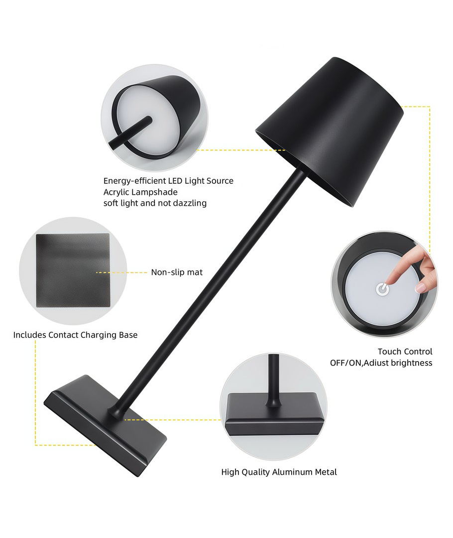 Funktioner:Uanset om den bruges i en stilfuld stue, på et hyggeligt terrassebord eller som en praktisk sengelampe, tilføjer denne LED lampe både funktion og elegance til dit miljø. Nyd lys, der er både energieffektivt og miljøvenligt, mens du holder kontakten med den nyeste teknologi.