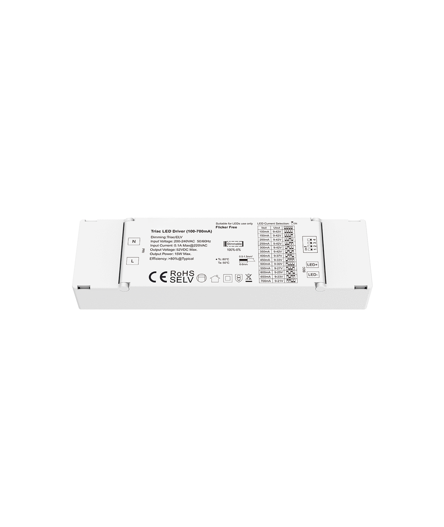 Kan justeres til en bred vifte af strømoutput, fra 100mA til 700mA, se tabel nedenfor.