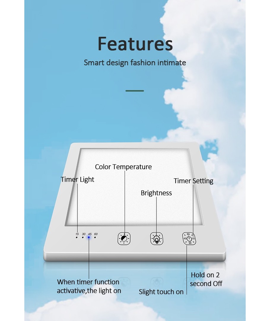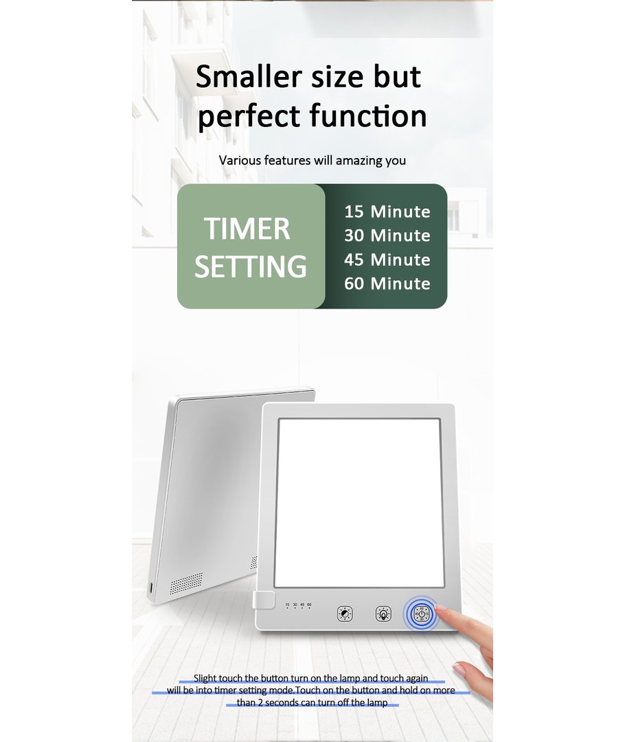 Forbedr din daglige rutine med vores LED lysterapi lampe, designet til at give dig et energiboost på de mørke dage. Med et praktisk timer-funktion kan du tilpasse din lysregime til dine personlige behov, så du får præcis den mængde lys, du behøver.