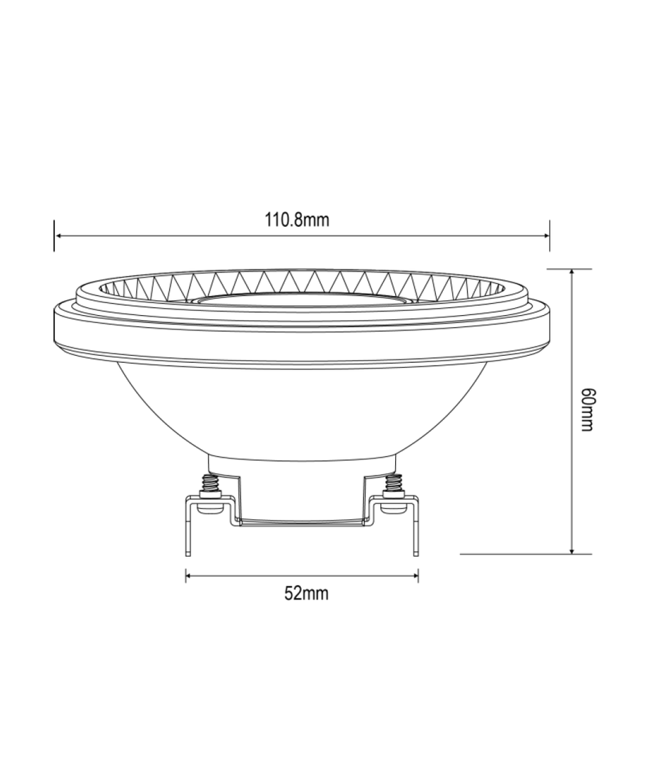 Her får du et AR111 spot med en UGR<19 som er lidt over det normale, da lysfarven er 2700K varm hvid, men også farvegengivelsen er meget høj, og ligger på Ra97. Dioden der anvendes i dette spot, er fra Japanske SHARP, som i dag er blandt de 3 største producenter i verden. Det sikre dig lang levetid, og ordentlig lysfarve.