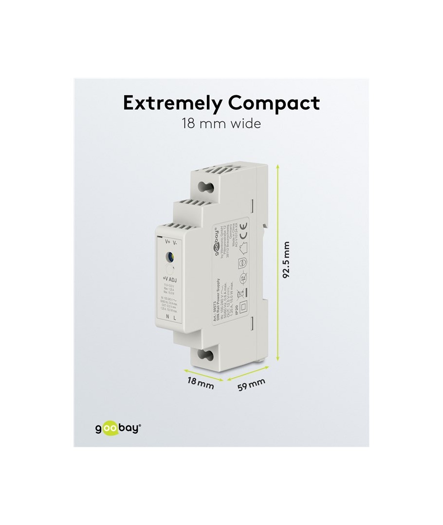 Strømforsyningen er nem at installere takket være dens kompakte design, som sparer plads og integrerer problemfrit i forskellige miljøer. Med dimensioner på blot 18 x 92,5 x 59 mm, passer den ideelt til tæt installerede systemer på DIN-skinner.