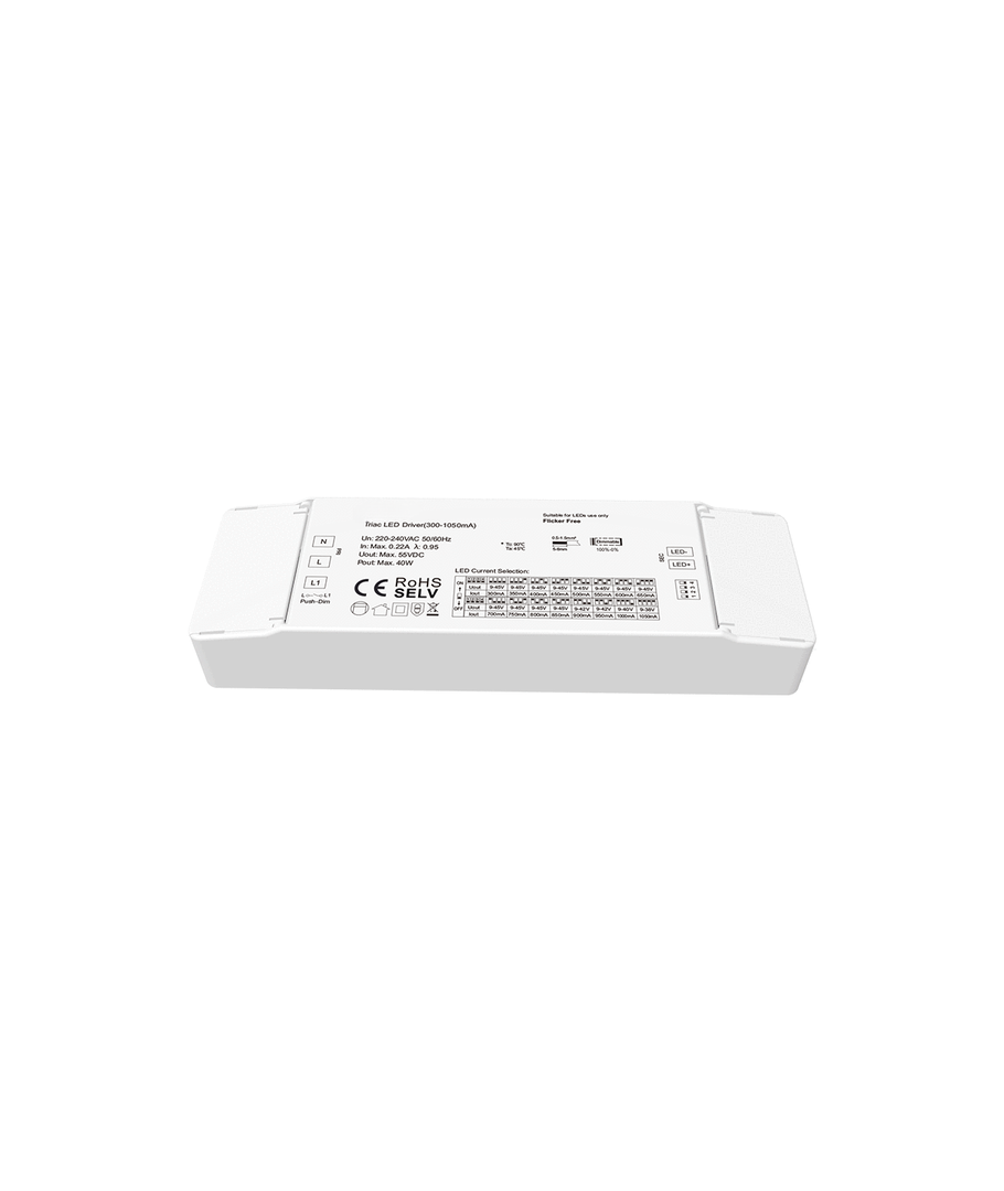 Kan justeres til en bred vifte af strømoutput, fra 300mA til 1050mA, se tabel nedenfor.