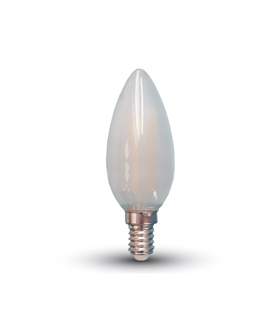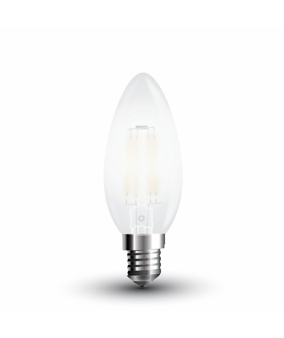Opgrader dit belysningssystem med denne 4W LED kertepære designet med en stilfuld kultråd og matteret glas. Med E14 lille fatning passer den perfekt til diverse lamper og erstatter traditionelle 40W pærer.