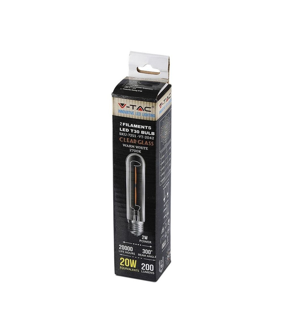 2W LED pære fra V-Tac med kultråde og E27 stor fatning.