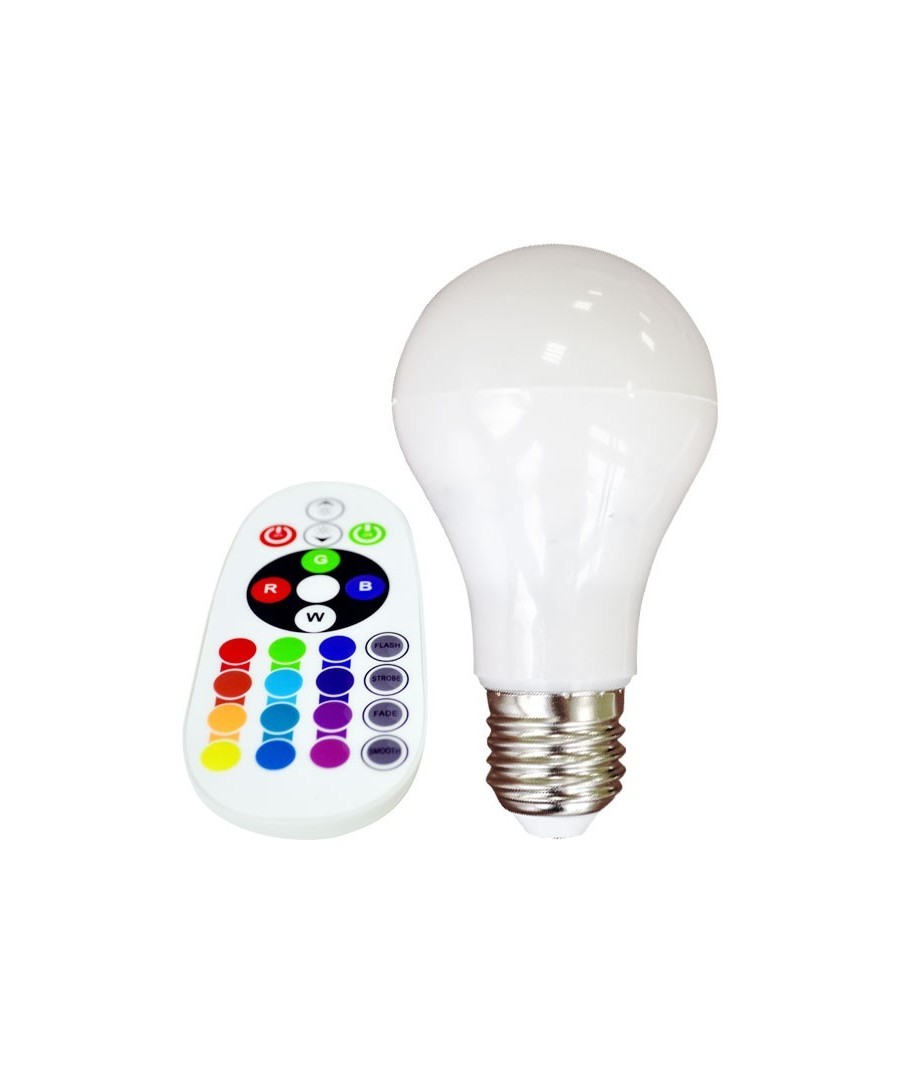 5 stk. RGBW E27 pære med fjernbetjening, hvor man kan skifte farve.