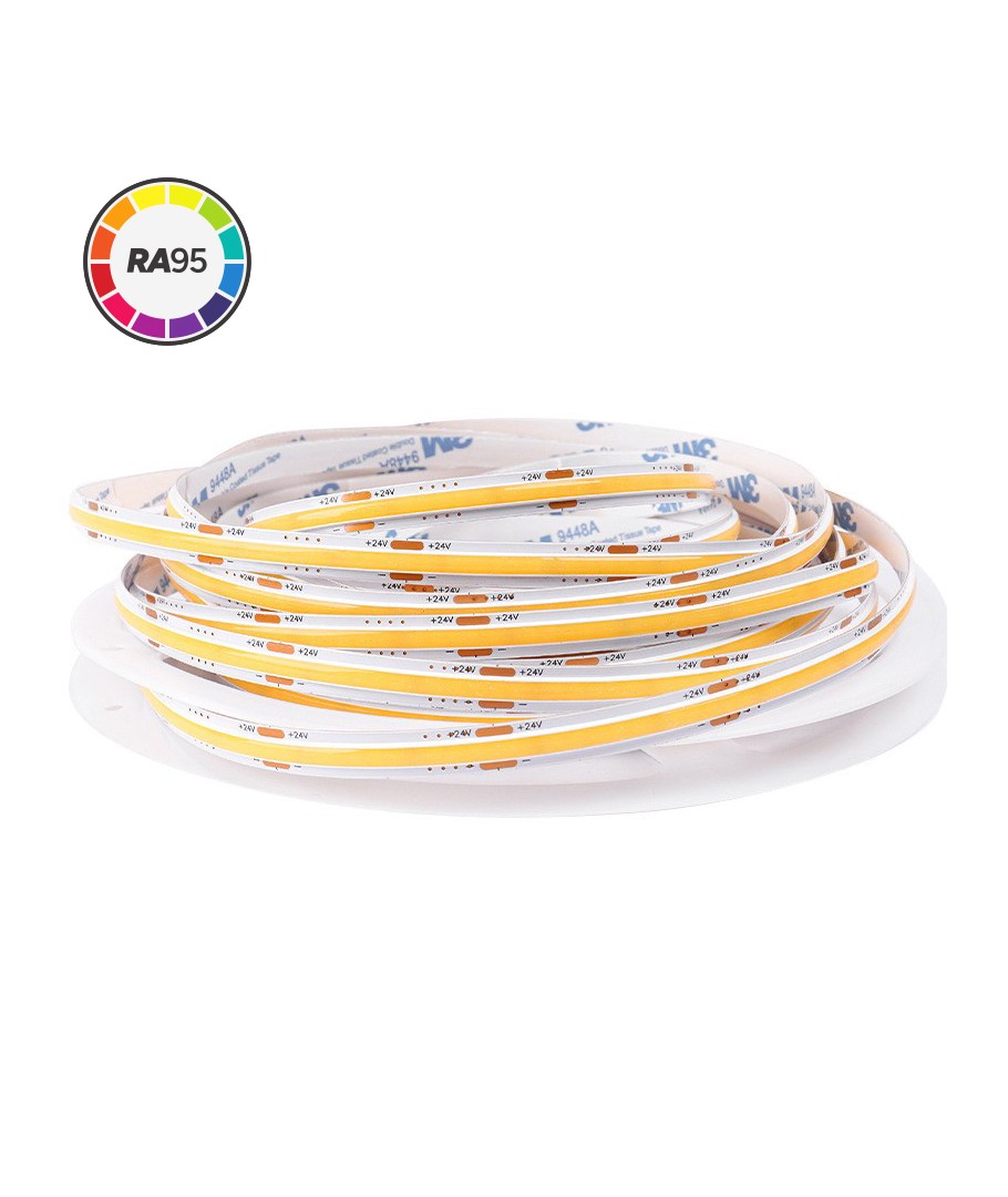 Oplev en høj lyskvalitet med vores Dot-free COB-LED strip. Denne innovative lysstrip er designet til at levere en lysstrøm på 350 lumens/meter og en spredningsvinkel på 180 grader, hvilket sikrer en jævn og ensartet belysning.