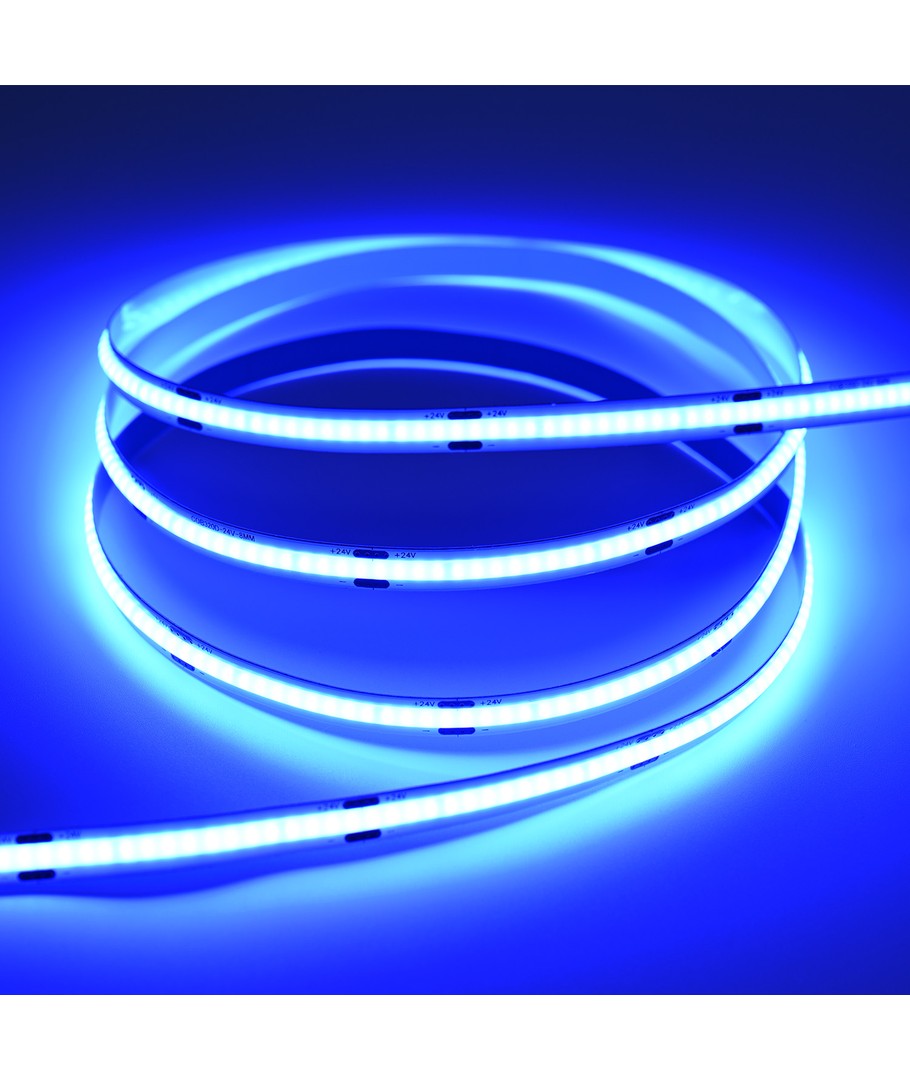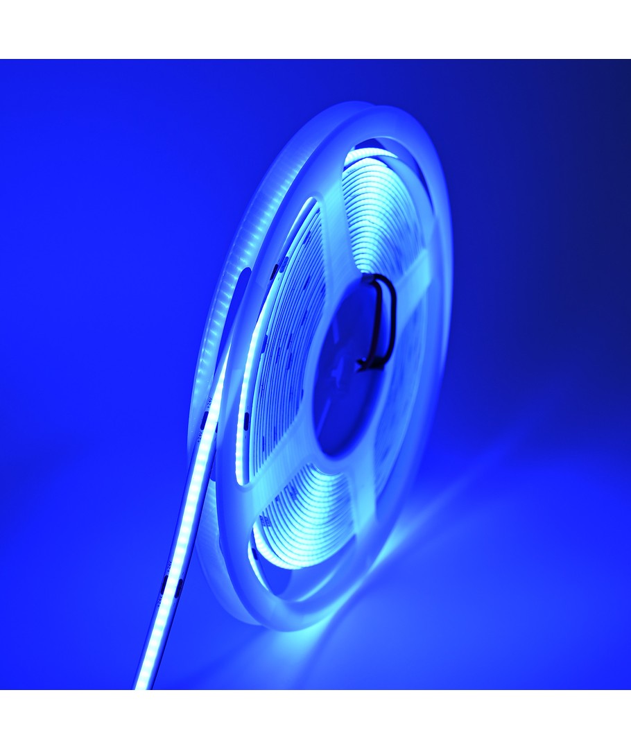 Enkeltfarvet blå COB LED strip med 320 LED'er per meter.