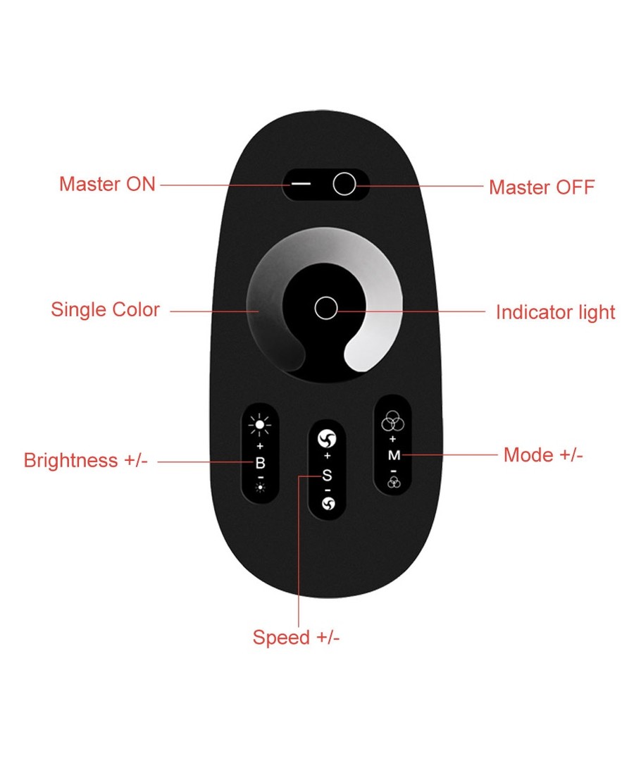 Dette sæt styres via den medfølgende fjernbetjening, hvor det er muligt at indstille lysstyrken på lyset samt vælge om lyset skal være tændt eller slukket.