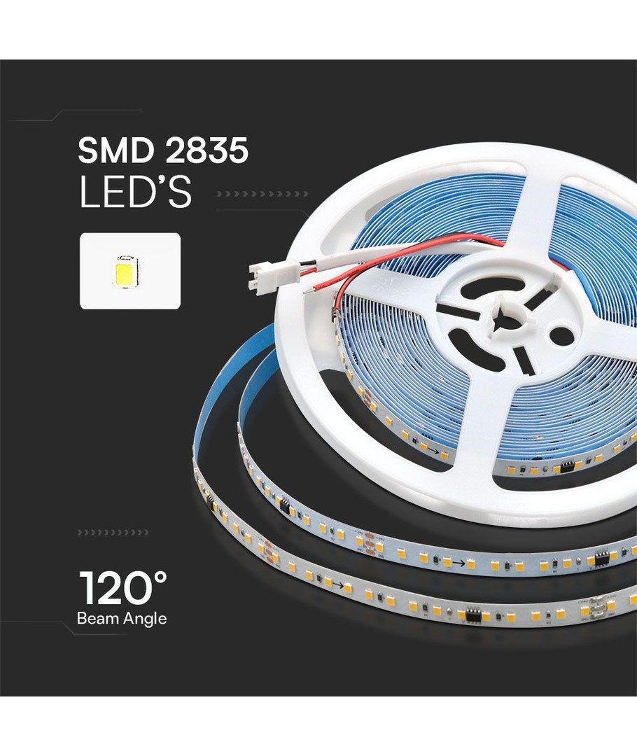 LED strippen kræver en 24V DC forsyning og tilbyder en lysstyrke på 800 lumens/meter med en høj spredningsvinkel på 120 grader. Dette sikrer en jævn og effektiv lysfordeling, velegnet til mange anvendelser.