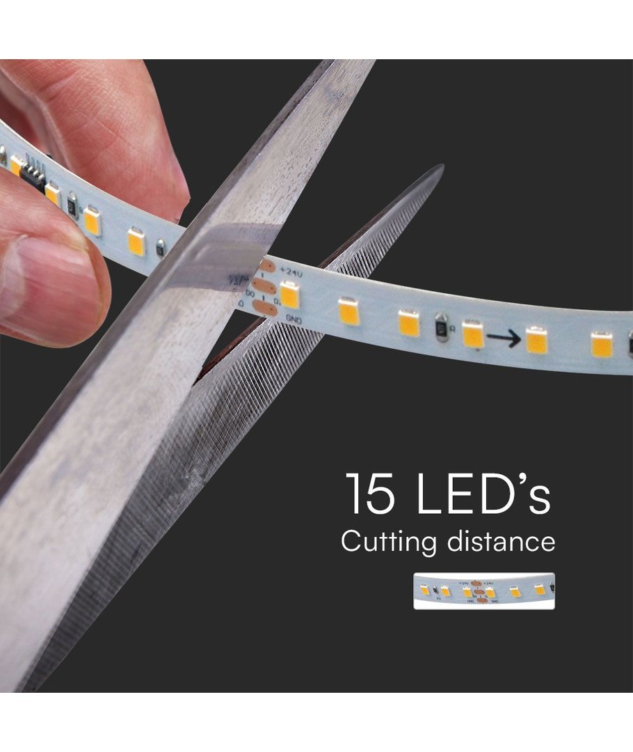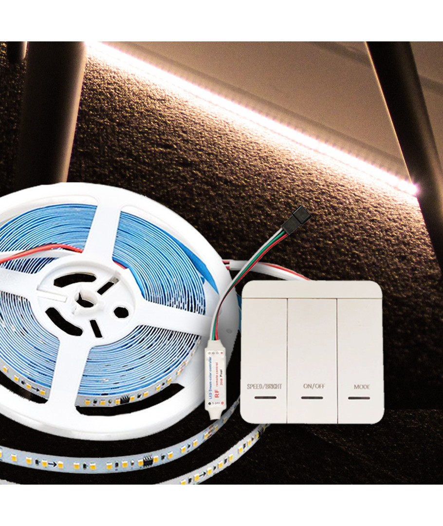 Med denne 24V LED strip kan du skabe fantastiske effekter som løbelys eller vandfaldseffekt/landingsbanelys, hvor lyset bevæger sig elegant fra den ene ende af strippen til den anden.