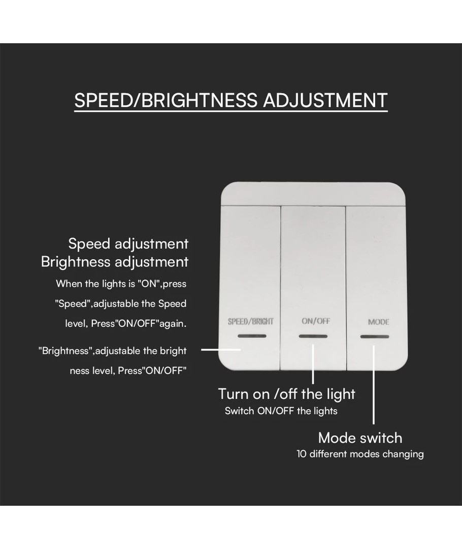 Med controlleren kan du nemt justere lysstyrken og hastigheden af lyseffekterne.