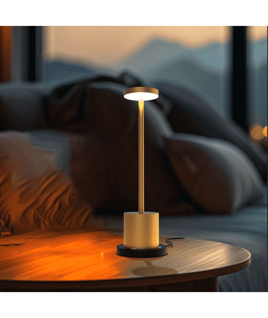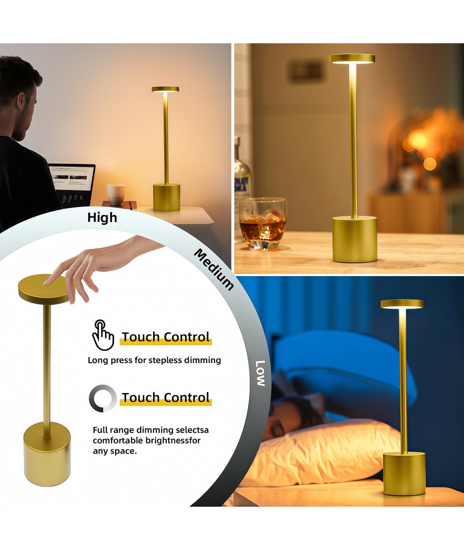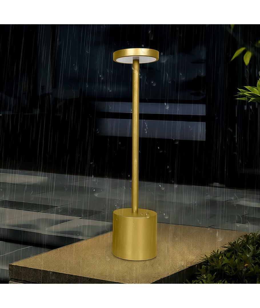 Bring både skønhed og funktionalitet ind i dit hjem med denne sofistikerede LED bordlampe i guld. Ideel til indendørs og udendørs brug, med en IP54-klassificering, kan den modstå fugtig luft og vandstænk.