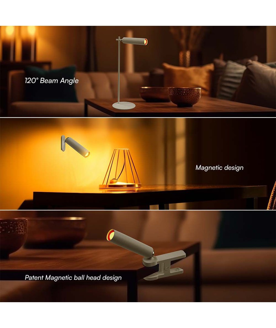 Lampens design er præget af en hvid finish og en magnetisk base, der gør montering nem og fleksibel. Placer lampen på enhver metaloverflade, eller brug den som en bærbar lyskilde til forskellige formål i hjemmet eller på kontoret.