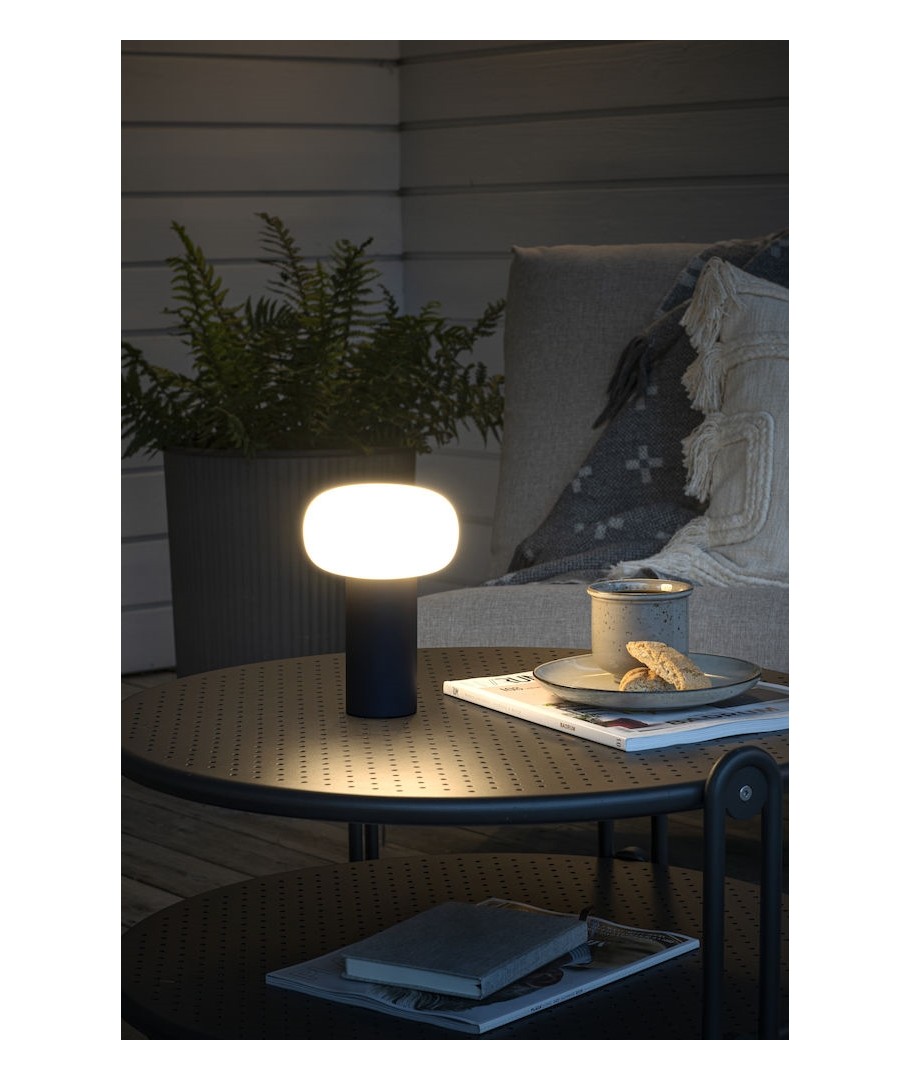 Antibes genopladelig LED bordlampe fra Svenske Konstsmide, er en lækker og smart bordlampe til inde- og udendørs brug. Lampen leveres med mulighed for farveskift mellem 2700K, 3000K og 4000K lysfarve, samt RGB farverne. Lampen kan ligeledes dæmpes flydende fra fra 100% og ned til 1%
