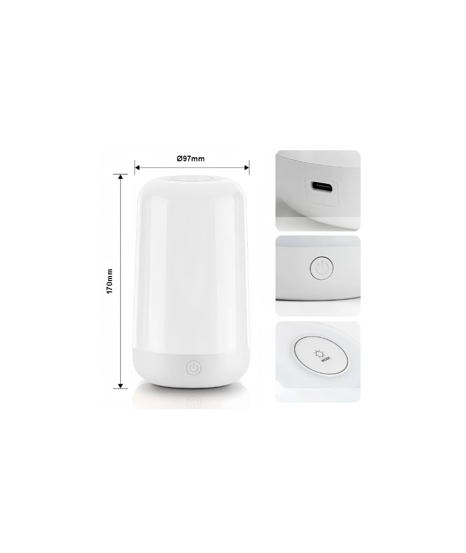 Egenskaber:Med sin moderne design i hvid passer denne lampe perfekt ind i enhver indretning, og dens fleksibilitet gør den ideel til brug som natlampe eller bordlampe. Opladningsmuligheden gør det nemt at flytte lampen rundt, så den kan opfylde dine skiftende behov. Perfekt til dem, der ønsker en høj kvalitet og alsidig lampe til hjemmet.