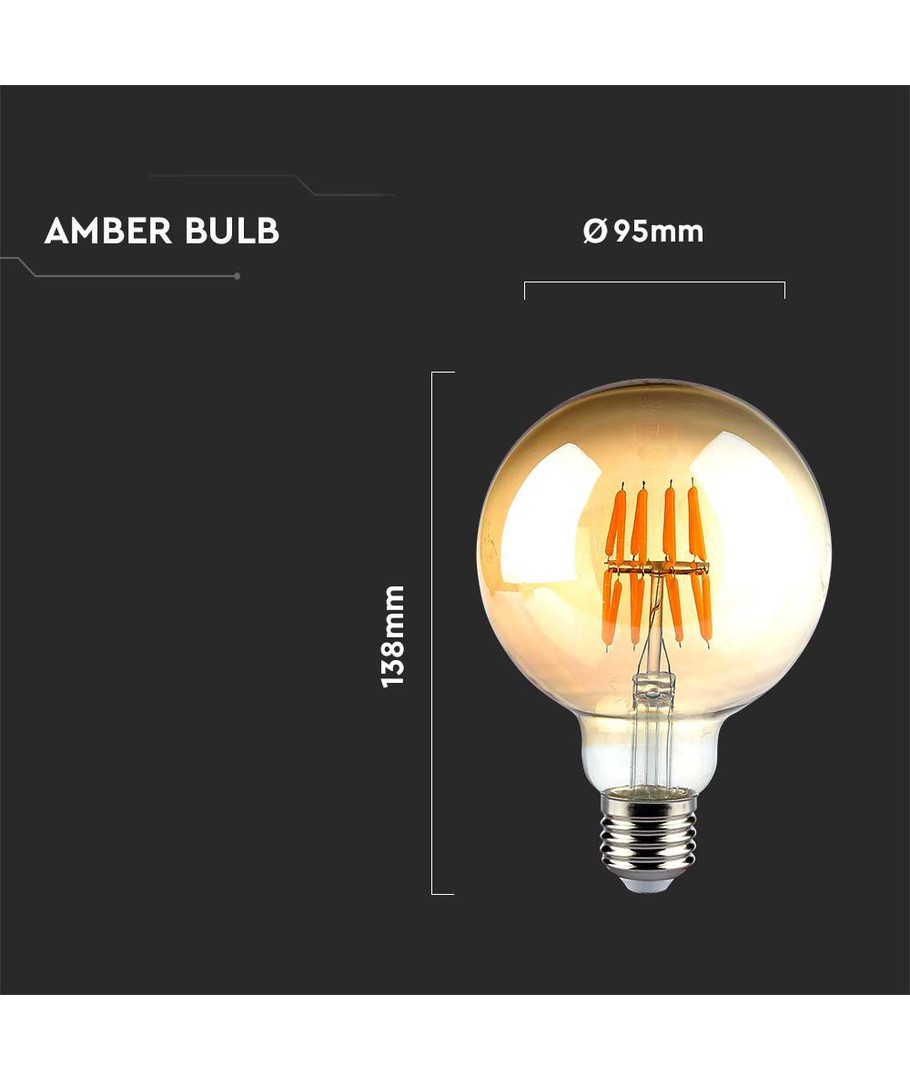 V-Tac G95 8W LED globepære er det perfekte valg for dem, der ønsker en stilfuld og effektiv belysningsløsning med en varm og indbydende glød.