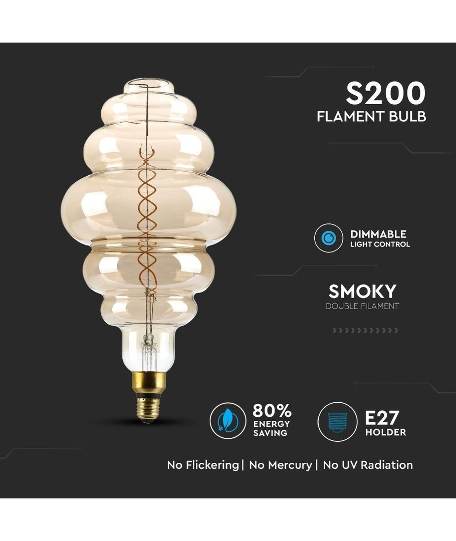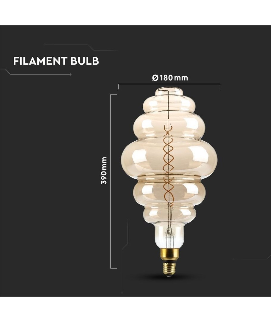 Dekorativ kæmpe globepære fra V-Tac. Pæren er STOR og kan sagtens bruges uden lampeskærm.