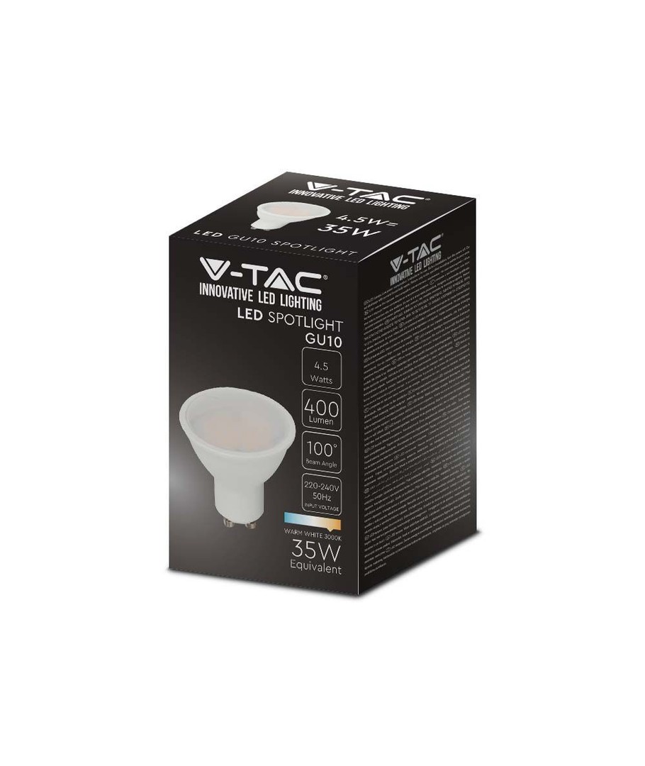 Oplev en holdbar og energieffektiv løsning med denne 4,5W LED spot med GU10 fatning fra V-Tac. Designet til at erstatte en traditionel 35W spotpære, er denne LED-pære perfekt til både private og professionelle miljøer.
