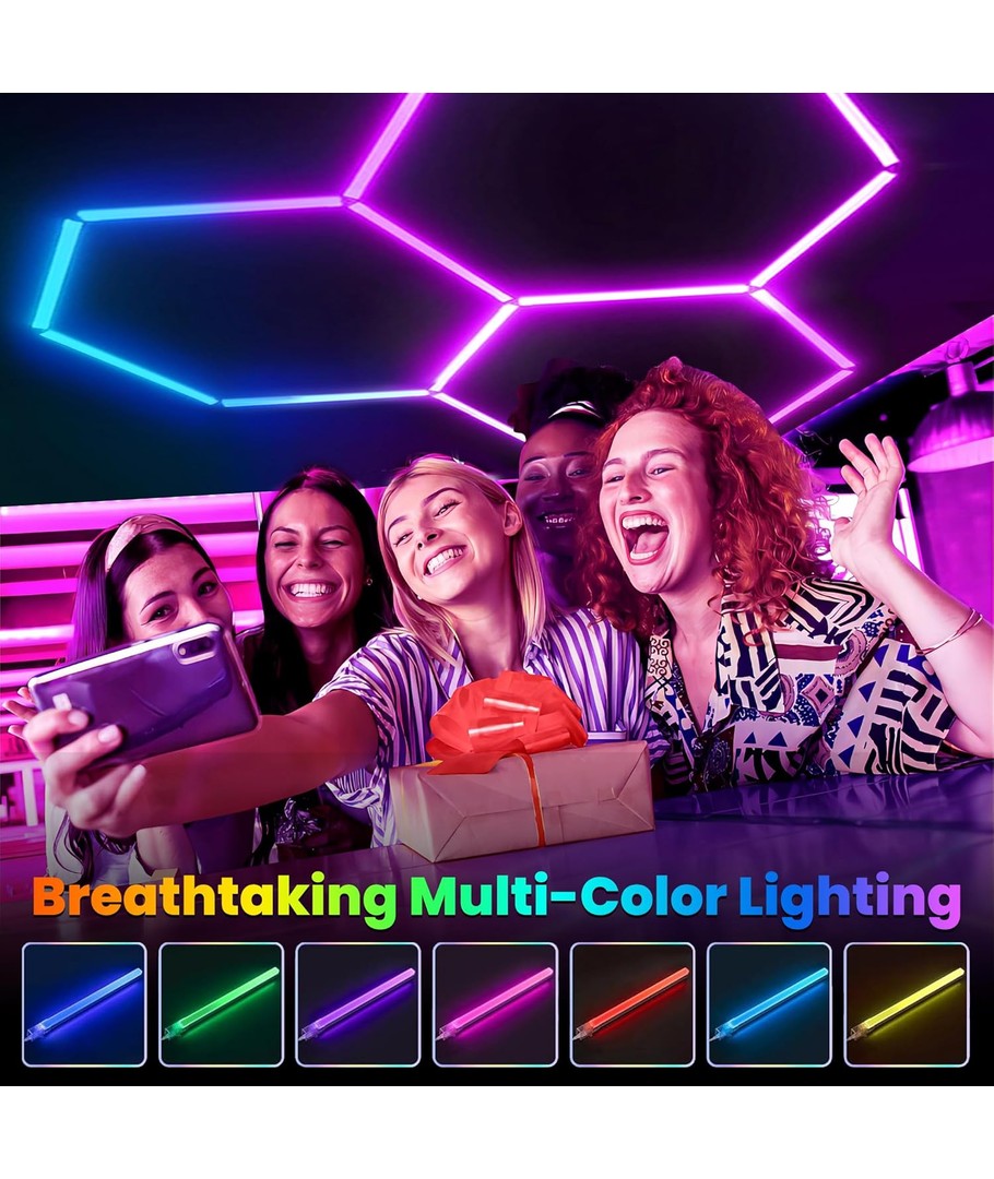 Uanset om du ønsker en hyggelig belysning til en rolig aften derhjemme eller søger at imponere med en dynamisk lysopsætning til festen, er Hexagon RGBIC 3 Felter Komplet Sæt det perfekte værktøj. Det kreative design og den høje fleksibilitet i dette sæt gør det nemt at tilpasse og integrere i ethvert rum.