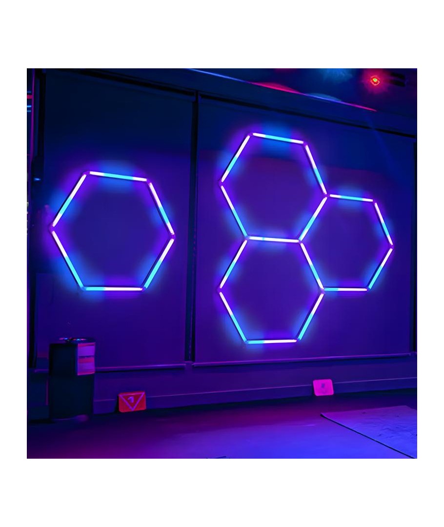 Skab en fantastisk atmosfære med dette moderne belysningssæt. Dette komplette sæt består af tre hexagonale lyspaneler, der giver mulighed for at eksperimentere med forms, farver og lysstyrke.