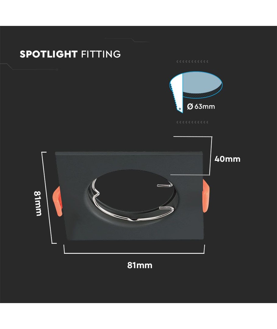 Dimensionerne på disse downlights er 81 x 40 x 81 mm, hvilket gør dem kompakte og lette at installere i mange forskellige indretninger. Den krævede hul størrelse for installation er 63 mm, hvilket gør dem velegnede til mange senarier.