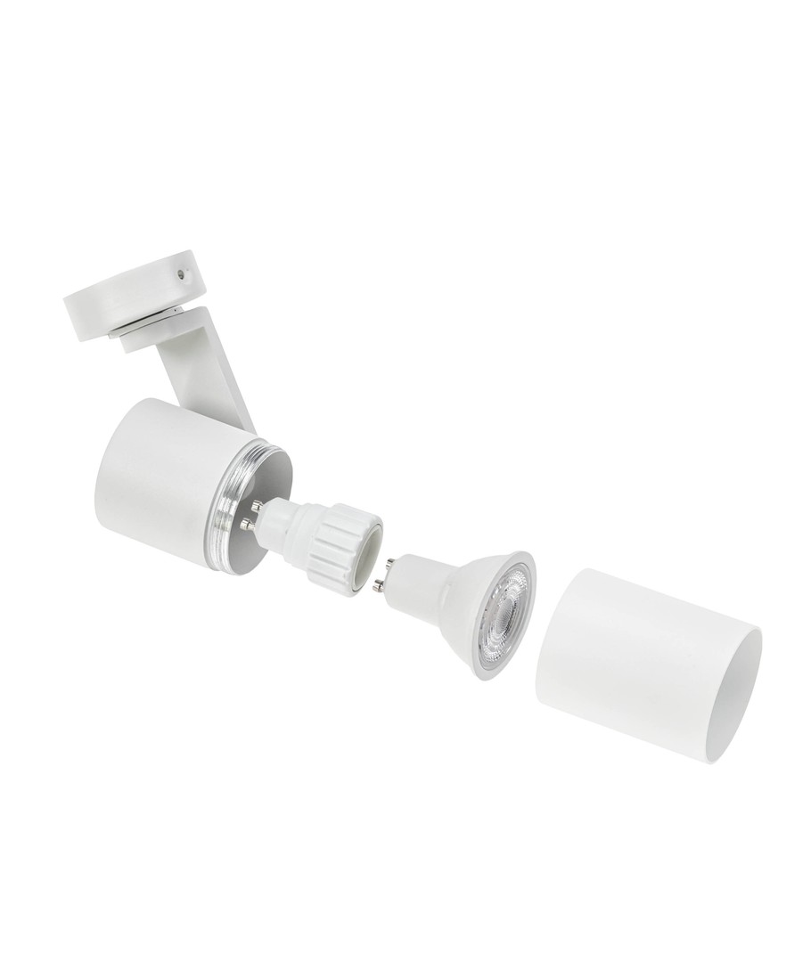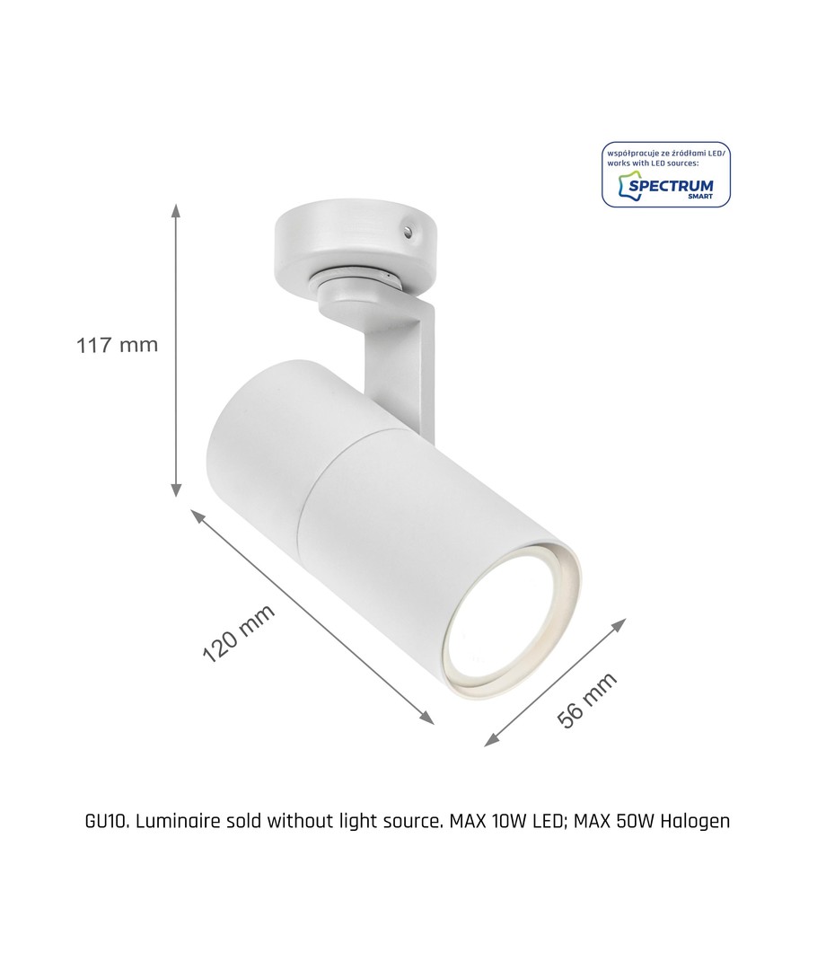 Denne elegante væg/loftmonterede spot i hvid finish er designet til at give dit rum et moderne touch og optimere belysningen med stor fleksibilitet.