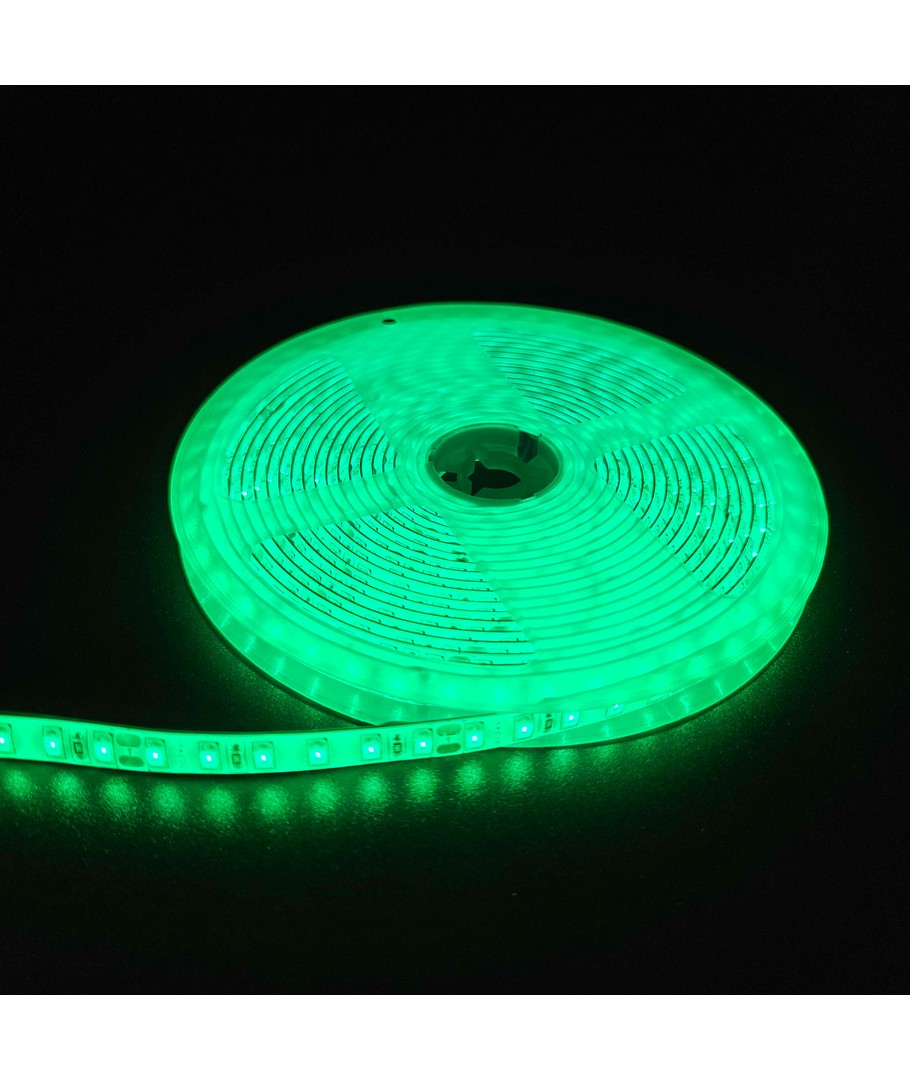 Skab en stemningsfuld belysning med denne grønne 10W/m LED strip på 5 meter, der har en klarere farve end RGB.