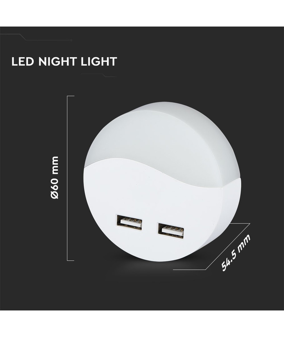 V-Tac Natlampe med USB er designet til at give blødt lys og effektiv opladning, perfekt til natbelysning.