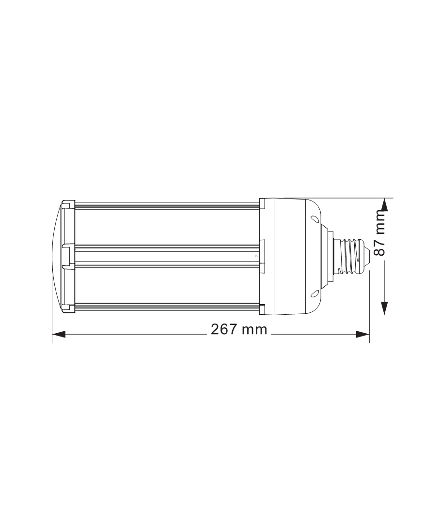 Med dimensionerne 267 x Ø87 mm, præsenterer pæren sig som en kompakt, men kraftfuld lyskilde, der passer til mange forskellige armaturer og stilarter. Det klare glas design giver et klassisk udseende, der harmonerer med både moderne og traditionelle omgivelser.