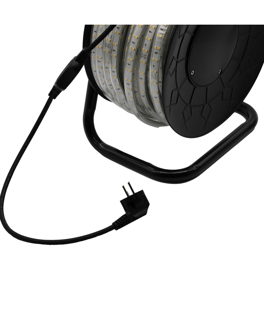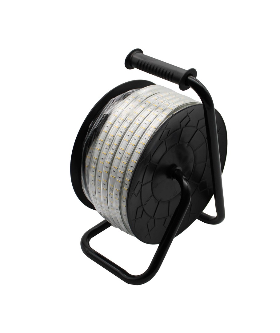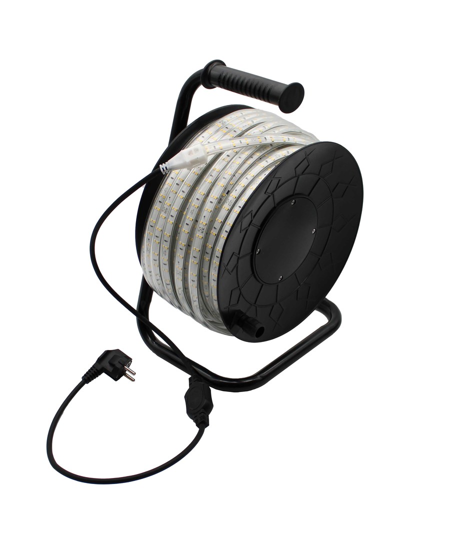 Optimér dit arbejdsmiljø med denne avancerede LED strip, som strækker sig over 50 meter på en praktisk tromle. Med 120 LED'er pr. meter, leverer denne strip en lysstyrke på 1320 lumen pr. meter, hvilket giver en total lysstyrke på 66000 lumens for hele rullen. Den er designet til professionel brug med en bred lysfordeling på 120 grader, der sikrer jævn belysning over hele arbejdsområdet.