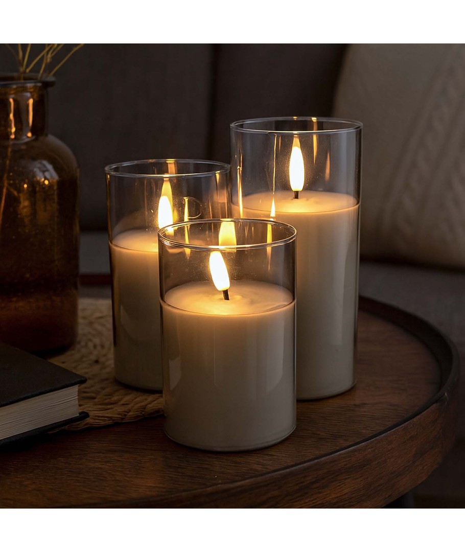 Oplev den betagende skønhed og stemning fra levende lys uden risiko med vores LED Bloklys sæt i gråtonet glas. Dette elegante sæt indeholder tre lys i forskellige højder med en realistisk flammeeffekt, der skaber en varm og indbydende atmosfære.