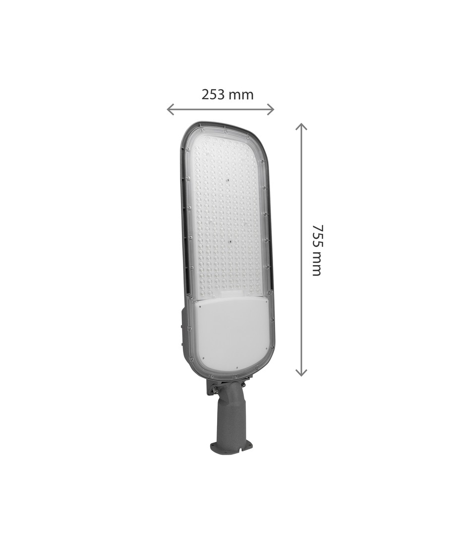 Oplev fremragende belysning med denne skumringssensor gadelampe, designet til at levere 27000 lumens lysstyrke. Med dens kraftige 200W input sikrer den en lysfordeling på 145/75 grader, hvilket giver en jævn og effektiv belysning på store områder.