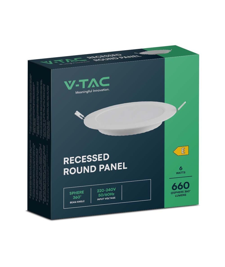 6W Ø12,5cm LED indbygningspanel - Hul: Ø11 cm, Mål: Ø12,5 cm V-TAC Udvid
