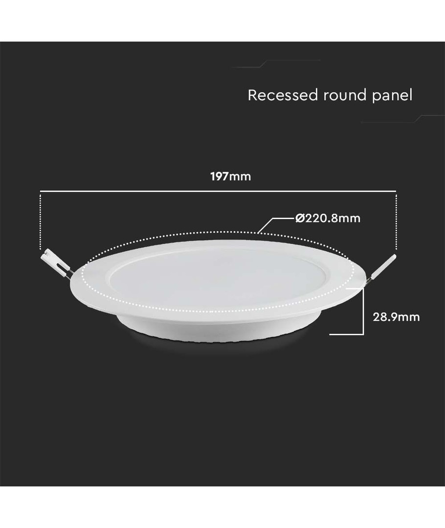 18W Ø22,8cm LED indbygningspanel - Hul: Ø20,5 cm, Mål: Ø22,8 cm V-TAC Udvid