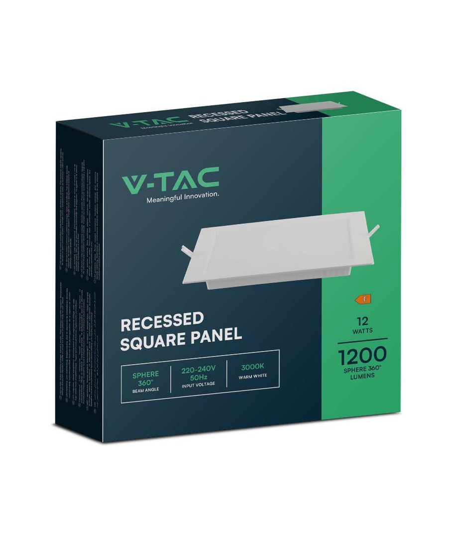 V-Tac 12W LED indbygningspanelet kombinerer høj kvalitet, funktionalitet og et flot design, hvilket gør det til en optimal løsning for dem, der søger både effektivitet og æstetik i deres indretning.