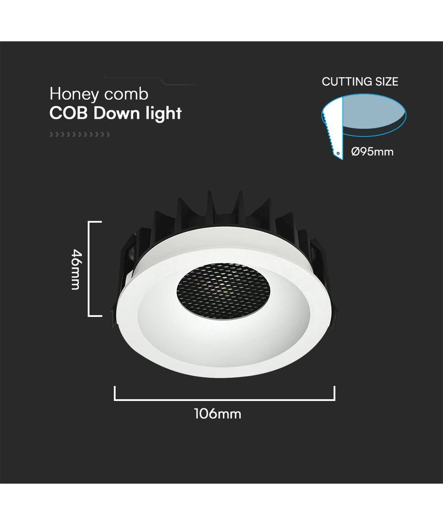 Fleksibilitet i LysindstillingerDownlighten tilbyder tre lyskulører: 3000K, 4000K og 6400K. Dette giver dig mulighed for at vælge den lysstyrke, der bedst passer til dit rum og din stemning.