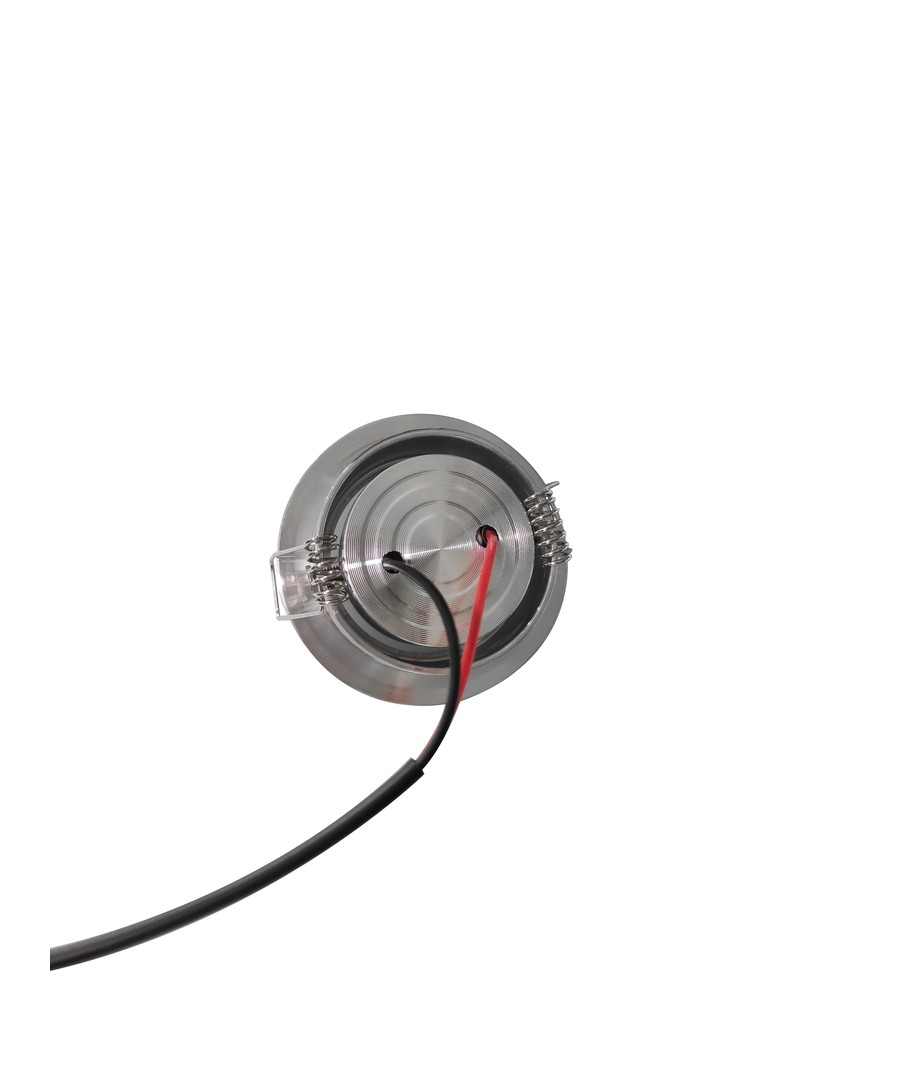 Dette indbygningsspot har en dimension på Ø5,2 cm og højden er kun 2,2 cm, hvilket gør det til et pladsbesparende valg. Til installation kræves et hul med diameter på 4,4 cm, der let kan indgå i de fleste lofter eller overflader.